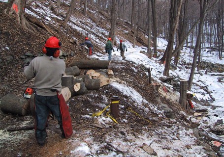 This award winning treework project took place in West Point Foundry Preserve in Coldspring, NY. The historic excavation site required special methods, such as technical rigging to safely remove trees from the site.